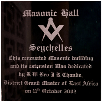 Freemasonry in Seychelles was officially established on 14th September 1977,with the Consecration of Seychelles Lodge 8789 EC. The ceremony was conducted by Right Worshipful Brother Douglas Duncan, the District Grand Master of East Africa, marking the success of 12½ years of dedication by the Four Square Club. To accommodate the growing number of members, the lodge underwent renovation and expansion in 2002.